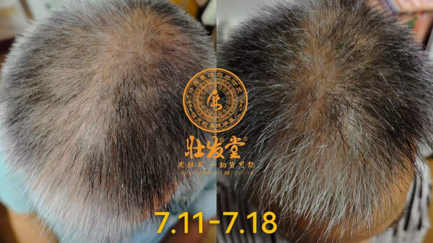 壮发堂白发转黑使用一个星期对比